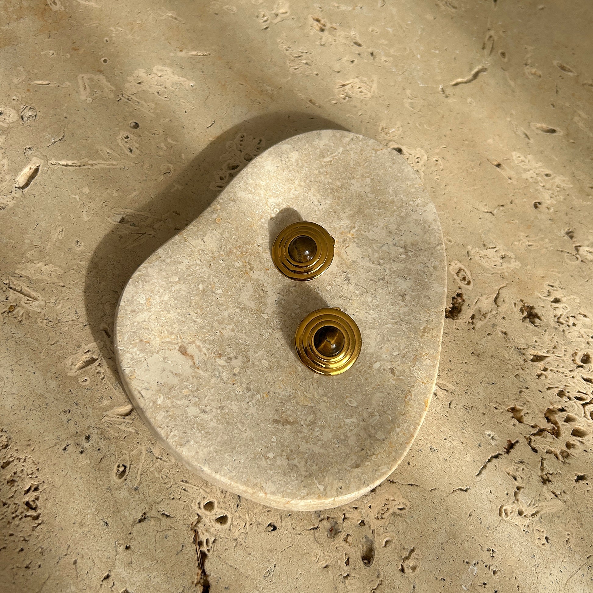 These 18 gold-plated stainless steel earrings are a perfect blend of vintage charm and modern simplicity. They feature a brown Cat's Eye Stone, known for its protective energy and inner balance.