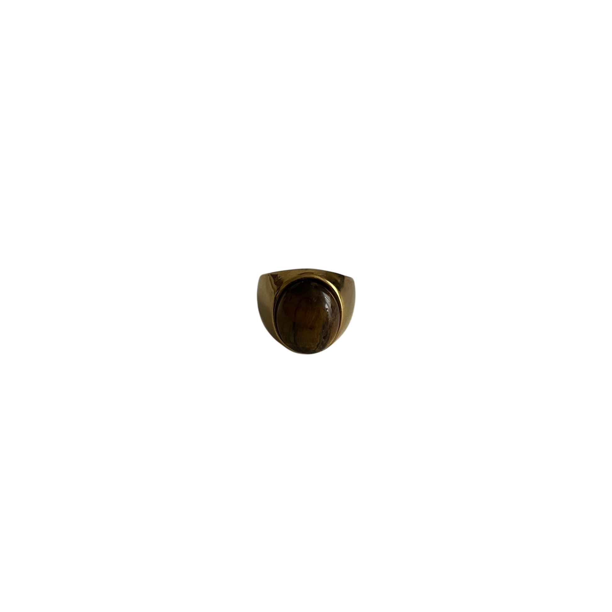 This 18 gold-plated stainless steel ring is a perfect blend of vintage charm and modern simplicity. It features a brown Cat's Eye Stone, known for its protective energy and inner balance.