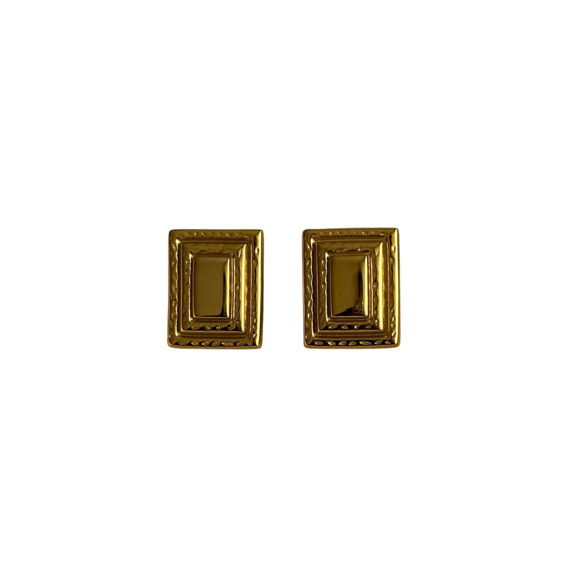 These 18 gold-plated stainless steel earrings are a perfect blend of vintage charm and modern simplicity. With their bold geometric shape and timeless golden finish, they evoke the charm of antique treasures.