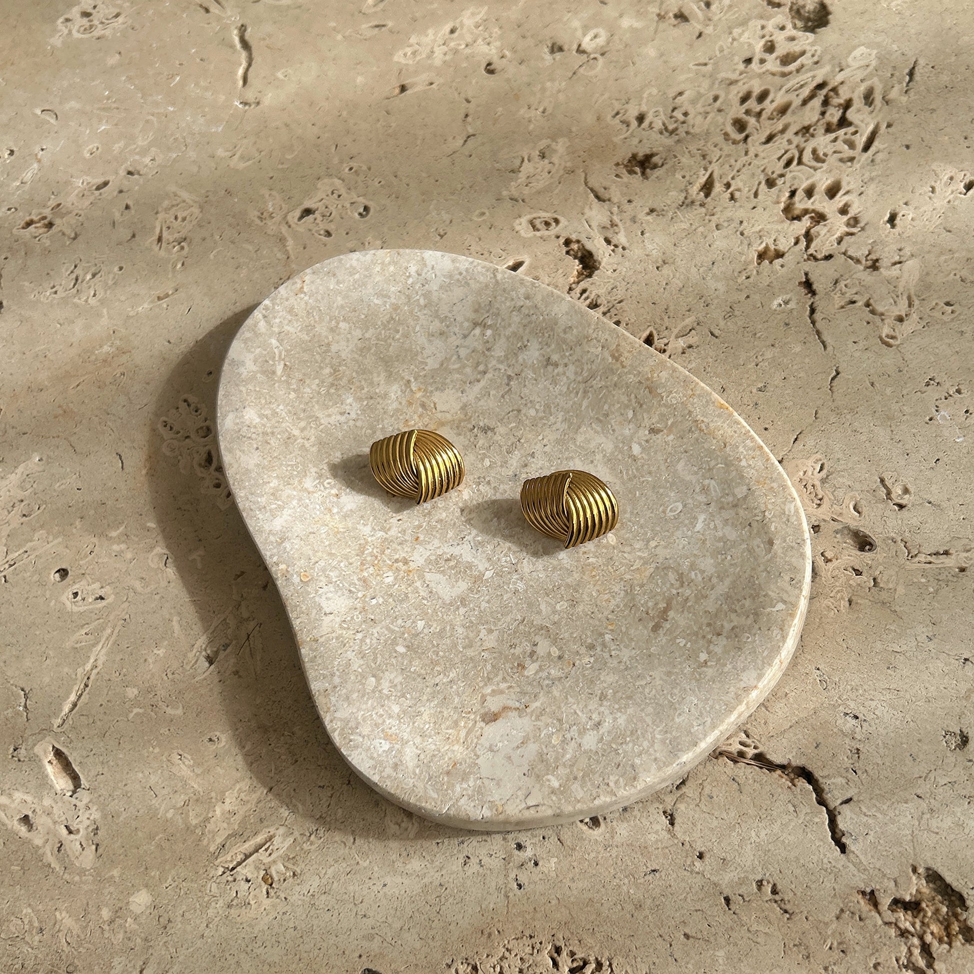 These 18 gold-plated stainless steel earrings are a perfect blend of vintage charm and modern simplicity. These earrings echo the delicate shape of angel wings, capturing the essence of Angels Vault. Their flowing design symbolizes movement, freedom timeless and elegance.